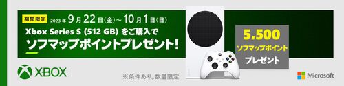▼5,500ポイントプレゼント(9/22〜10/1まで) Xbox Series S (512GB) [RRS-00015][ゲーム機本体] ▼その他コントローラーがお買い得 XBOX SALE 一覧 販売サイト:アキバ☆ソフマップ